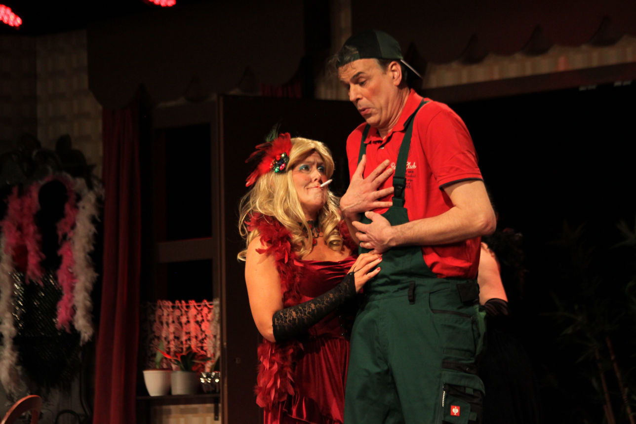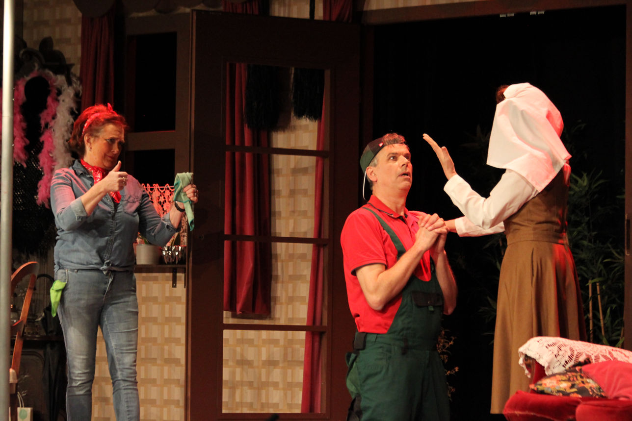 Toneelvereniging Amicitia is druk bezig met het repeteren voor de nieuwe avondvullende klucht “Ouwe Hoeren”.